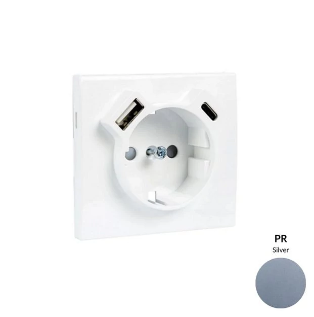EFAPEL 50630_TPR Fedlap Schuko + USB-A + USB-C aljzathoz, ezüst