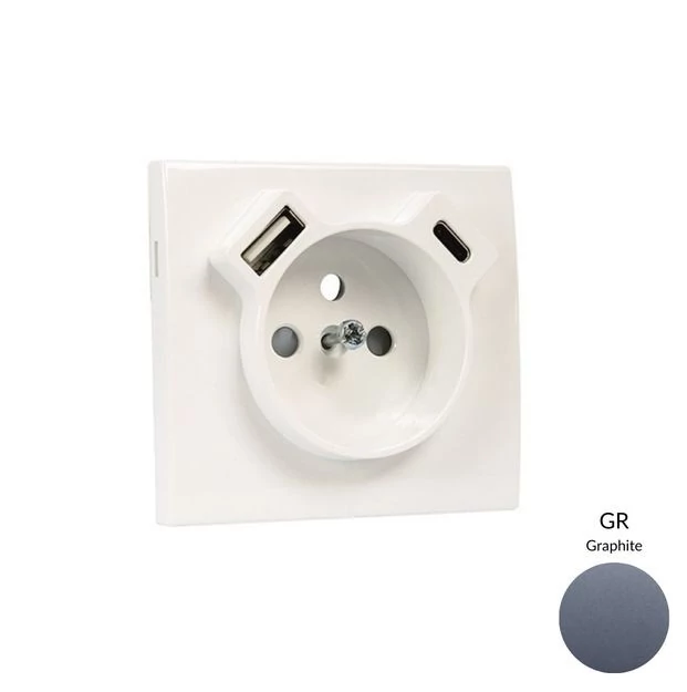 EFAPEL 50650_TGR Fedlap Francia dugalj + USB-A + USB-C aljzathoz, grafit