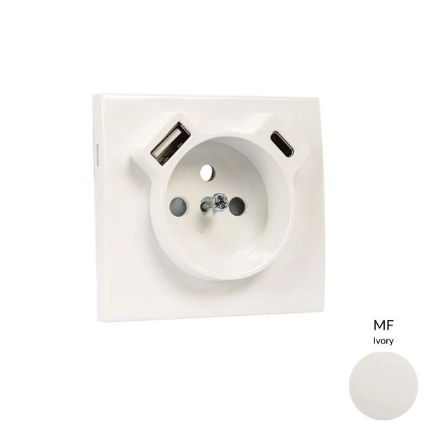 EFAPEL 50650_TMF Fedlap Francia dugalj + USB-A + USB-C aljzathoz, elefántcsont
