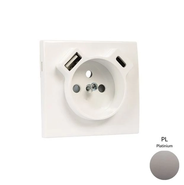 EFAPEL 50650_TPL Fedlap Francia dugalj + USB-A + USB-C aljzathoz, platina