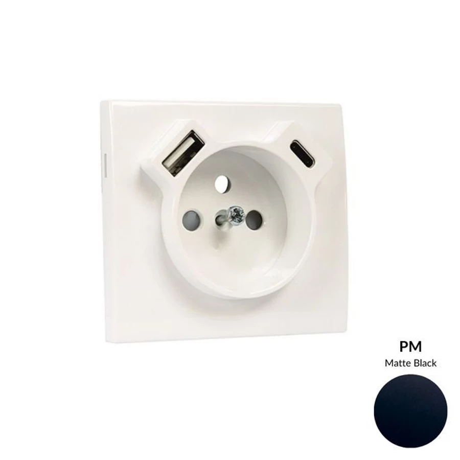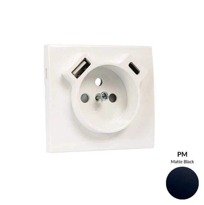 EFAPEL 50650_TPM Fedlap Francia dugalj + USB-A + USB-C aljzathoz, matt fekete