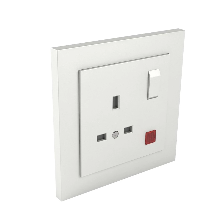 Komplett brit típusú földelt csatlakozó aljzat irányfénnyel, 13A-250V, jég színű