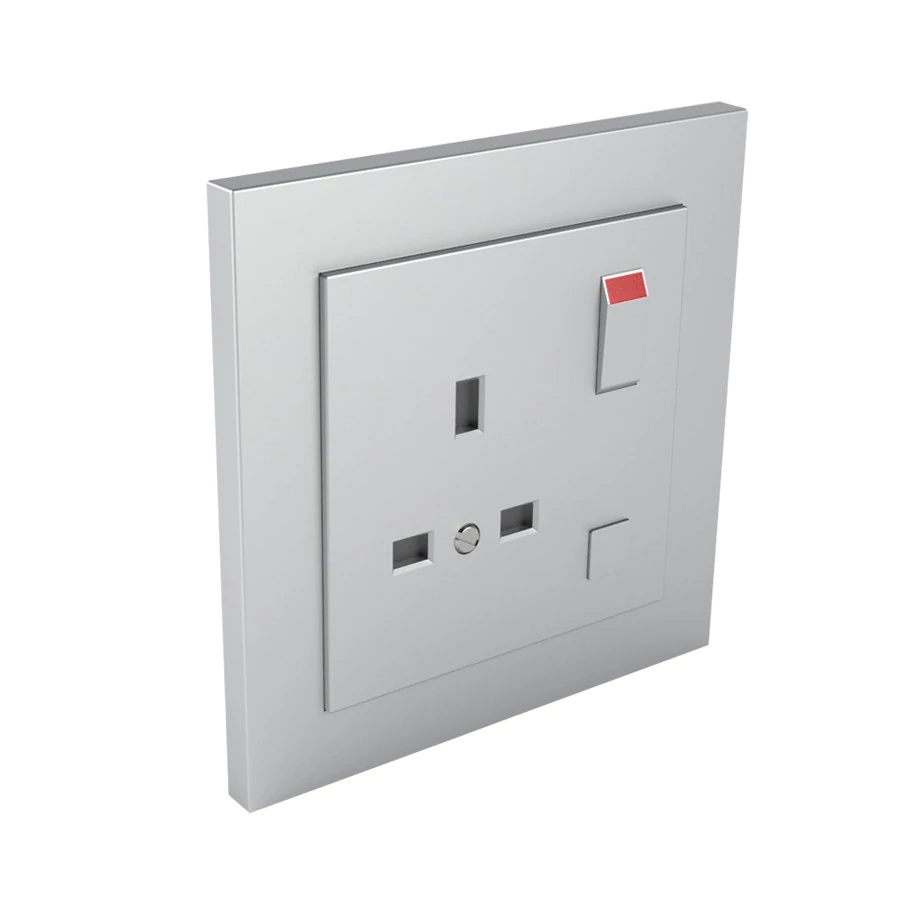Komplett brit típusú földelt csatlakozó aljzat, 13A-250V, alumínium színű