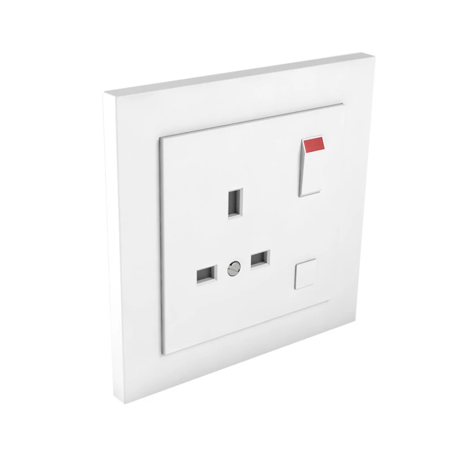 Komplett brit típusú földelt csatlakozó aljzat, 13A-250V, fehér színű