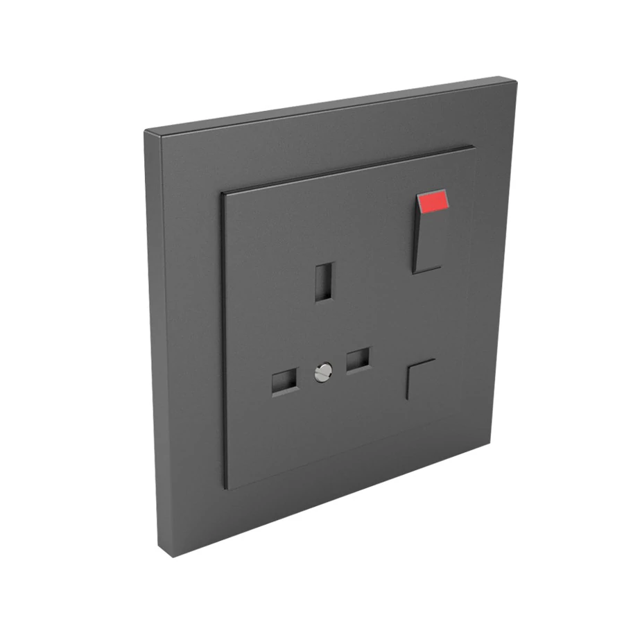 Komplett brit típusú földelt csatlakozó aljzat, 13A-250V, szürke színű