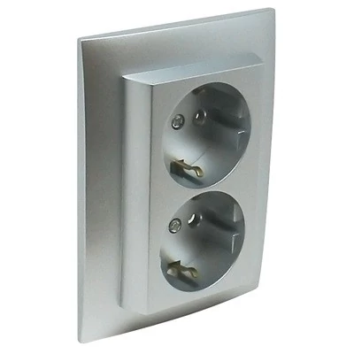 - Komplett dupla dugaszoló aljzat, gyerekzáras (16A-250V), alumínium színben