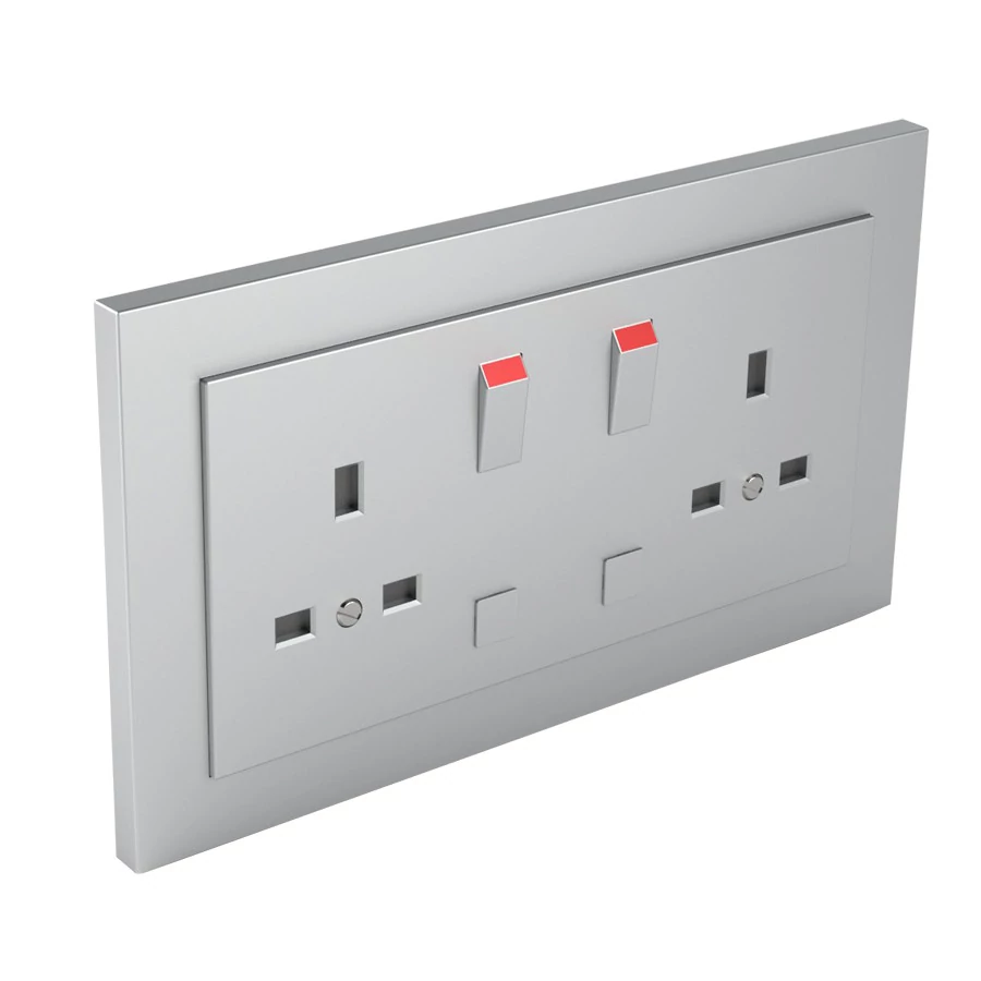 Komplett brit típusú dupla csatlakozó aljzat, 13A-250V, alumínium színű