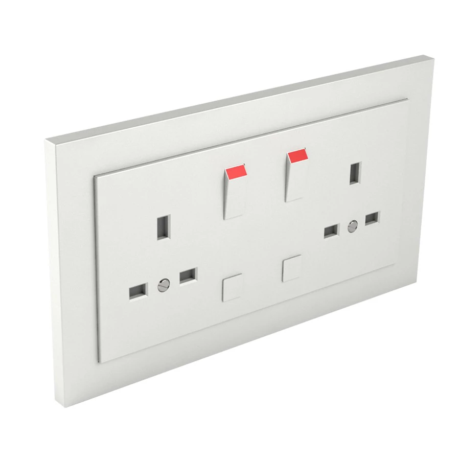 Komplett brit típusú dupla csatlakozó aljzat, 13A-250V, jég színű