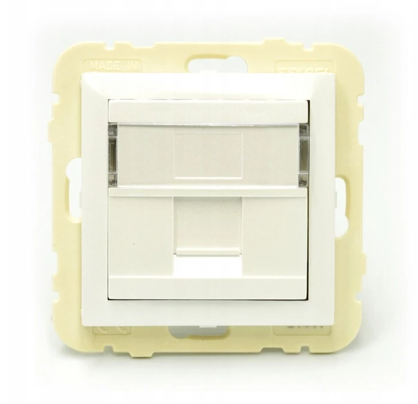 Szimpla RJ45 szerelvény fedlappal, csatlakozó nélkül. Szabványos "Keystone" árnyékolatlan UTP, árnyékolt FTP Cat5e és Cat6 bepattintható csatlakozók csatlakoztatására.