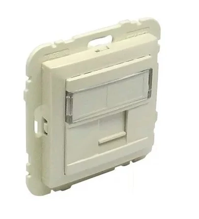 Szimpla RJ45 szerelvény fedlappal, csatlakozó nélkül. Szabványos "Keystone" árnyékolatlan UTP, árnyékolt FTP Cat5e és Cat6 bepattintható csatlakozók csatlakoztatására.