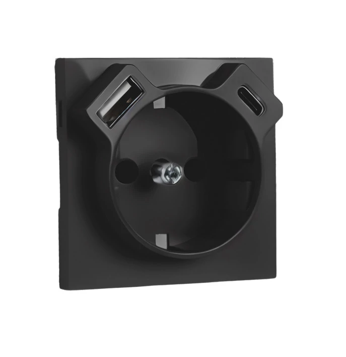 EFAPEL 90630 TPM - Fedlap Schuko + USB-A + USB-C aljzathoz, fekete