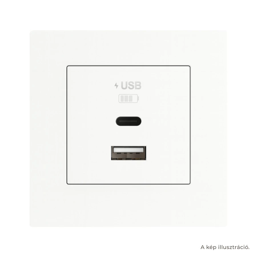 Ez a Quadro 45-ös dupla USB-aljzat egyszerre kínál USB-A és USB-C kimenetet, összesen 21 W töltési teljesítménnyel. Az USB-A port akár 2,4 A (12 W), míg az USB-C port akár 3 A (15 W) áramerősséget biztosít külön-külön. Mindkét port egyidejű használatakor a teljesítmény kiegyensúlyozottan oszlik el, így egyszerre két eszköz is hatékonyan tölthető vele.