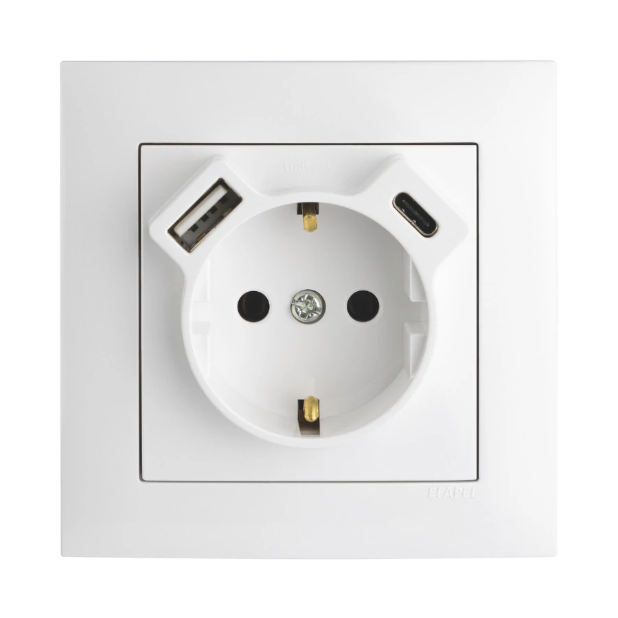 Ez a kombinált aljzat lehetővé teszi, hogy hálózati és USB-s eszközeidet egy helyen, külön adapterek nélkül használd. Praktikus megoldás konyhában, irodában vagy hálószobában, ahol egyszerre szeretnél lámpát, laptopot vagy más készüléket üzemeltetni, miközben a telefonodat vagy kiegészítőidet töltheted. A LOGUS90 termékcsalád részeként modern megjelenést és megbízható működést kínál, a lángálló, önoltó műanyag és az érintésvédett csatlakozások pedig magas szintű biztonságot garantálnak.