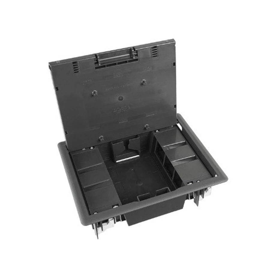 • Padlódoboz betonba történő beépítéshez, süllyesztett szerelődoboz használatával, valamint álpadlóba történő szereléshez rögzítő karmokkal.