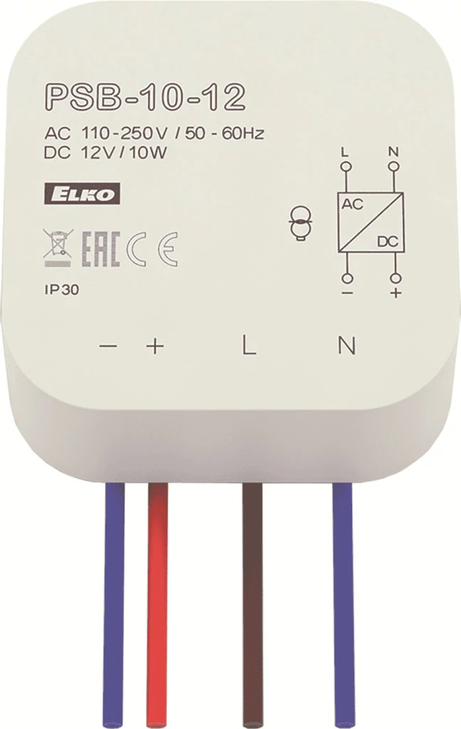 - kapcsolóüzemű tápegység fix stabilizált kimeneti feszültséggel, kötő- vagy szerelvénydobozba telepíthető kivitelben (pl. KU-68)