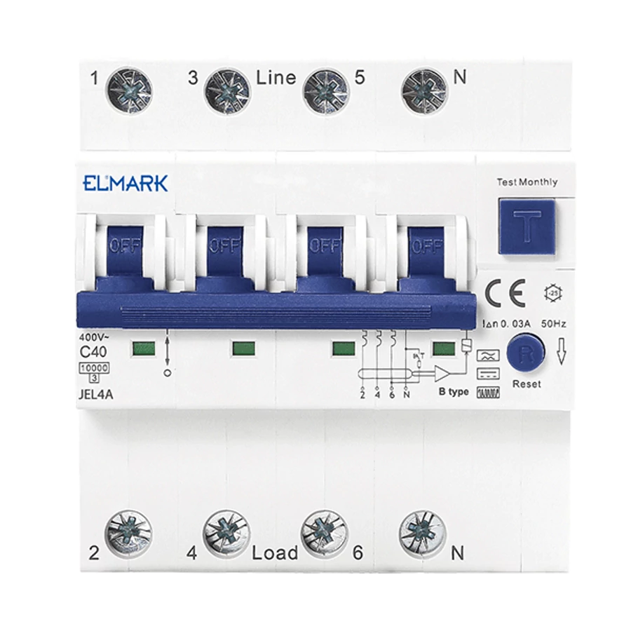 ELMARK 40485A Áram-védőkapcsoló 2 pólusú JEL4A 6kA 4P 25A/300mA RCBOJEL4A