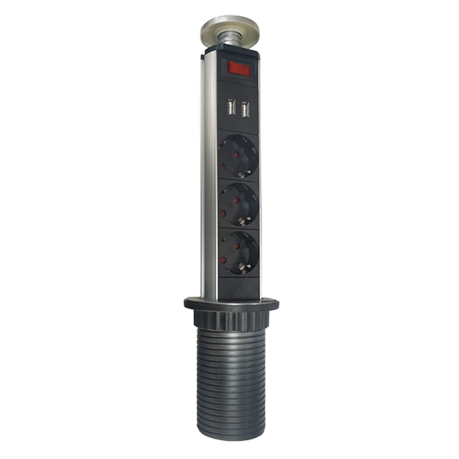 ELMARK 47006 TORONY TÖBBDUGÓS 3 SCHUKO+2 USB KRÓM