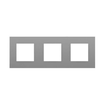 QUADRA típusú alumínium színű hármas keret, amely a Quadro 45 aljzatokkal, kapcsolókkal és mechanizmusokkal kompatibilis.