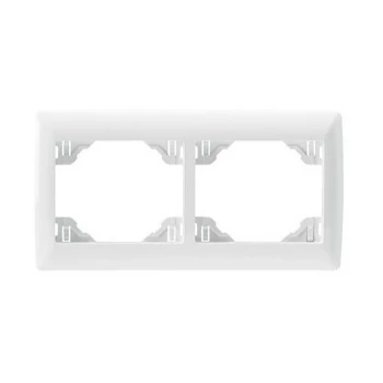 sirius70 típusú fehér színű kettes keret - vízszintes kivitel, amely a MEC 21 aljzatokkal, kapcsolókkal és mechanizmusokkal, valamint a sirius70 fedlapokkal kompatibilis. |