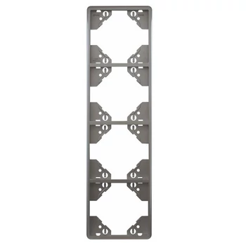 Apolo 5000 típusú ezüst színű négyes keret - függőleges kivitel, amely a MEC 21 aljzatokkal, kapcsolókkal és mechanizmusokkal, valamint az APOLO 5000 fedlapokkal kompatibilis. |