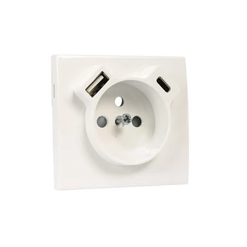 APOLO 5000 típusú fehér színű fedlap a 21117 mechanizmushoz (francia típusú konnektor + USB-A csatlakozó + USB-C csatlakozó)