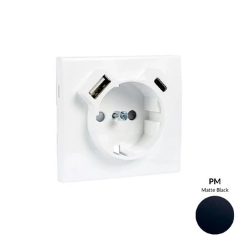 APOLO 5000 típusú matt fekete színű fedlap a 21137 mechanizmushoz (schuko konnektor + USB-A csatlakozó + USB-C csatlakozó)