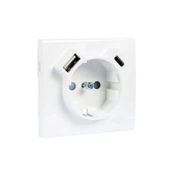 APOLO 5000 típusú fehér színű fedlap a 21137 mechanizmushoz (schuko konnektor + USB-A csatlakozó + USB-C csatlakozó)
