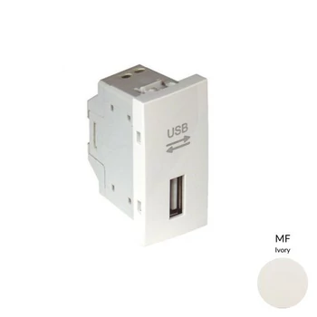 Quadro45 típusú 1 modul széles USB-A adatkommunikációs aljzat, elefántcsont színbenMax 12 Mbit/sFontos: Ez az aljzat kizárólag adatátvitelre szolgál, nem alkalmas eszközök töltésére!
