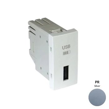 Quadro45 típusú 1 modul széles USB-A töltő aljzat, ezüst színben100 - 240 V ~ | 50 - 60 Hz - 5 V 1,5 A