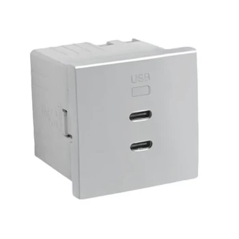 Quadro45 típusú dupla USB töltő aljzat, 2x USB-C típusú csatlakozóval, egyetlen szerelvényhelyen, alumínium színben100 - 240 V ~ | 50 - 60 Hz - 5 V 3 A