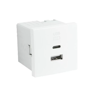Quadro45 típusú dupla USB töltő aljzat, USB-A és USB-C típusú csatlakozóval, egyetlen szerelvényhelyen, matt fehér színben100 - 240 V ~ | 50 - 60 Hz - 5 V 3 A
