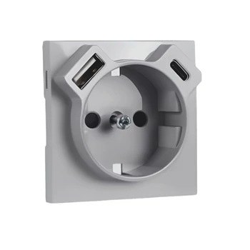 LOGUS 90 típusú alumínium színű fedlap a 21137 mechanizmushoz (schuko konnektor + USB-A csatlakozó + USB-C csatlakozó)
