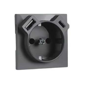 LOGUS 90 típusú szürke színű fedlap a 21137 mechanizmushoz (schuko konnektor + USB-A csatlakozó + USB-C csatlakozó)