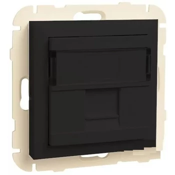 Fekete színű szimpla RJ45 szerelvény fedlappal, csatlakozó nélkül . Szabványos "Keystone" árnyékolatlan UTP, árnyékolt FTP Cat5e és Cat6 bepattintható csatlakozók csatlakoztatására. |