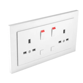 Komplett brit típusú dupla csatlakozó aljzat, 13A-250V, fehér színű