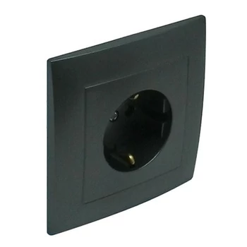 Komplett gyerekzáras Schuko típusú csatlakozó aljzat, 16A-250V, szürke színű