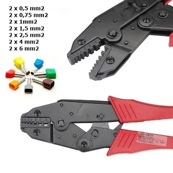 GMV HS-26TW racsnis krimpelő fogó, szigeteletlen,-szigetelt iker érvéghüvelyhez