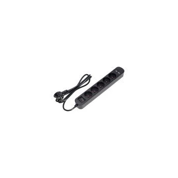 VIRONE PS-1/B/1,5M Túlfeszültség-védelemmel ellátott elosztó, 5 db 2P+F aljzat, 1,5 m-es kábel, kétsávos, háttérvilágításos kapcsoló, 10A/230 VAC, 2xUSB 2.1A, lapos csatlakozó