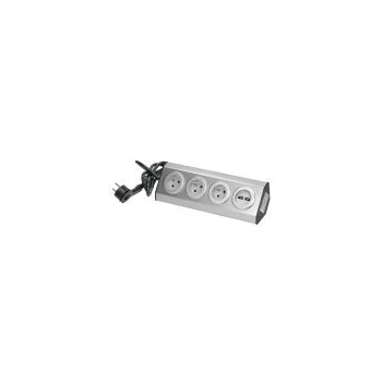 VIRONE FS-4 Konnektorkészlet USB töltővel, bútorokhoz és konyhába, tépőzáras rögzítőcsíkokkal és 1,5 m hosszú kábellel -3x2P+Z, 2xUSB 5V 2,4A, INOX, 16A