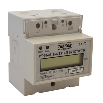 Tracon TVO-F1-WT LCD kijelzésű 1 fázisú átfűzős fogyasztásmérő, közvetlen 230V / 30 (100)A Pd=1W