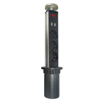 ELMARK 47006 TORONY TÖBBDUGÓS 3 SCHUKO+2 USB KRÓM