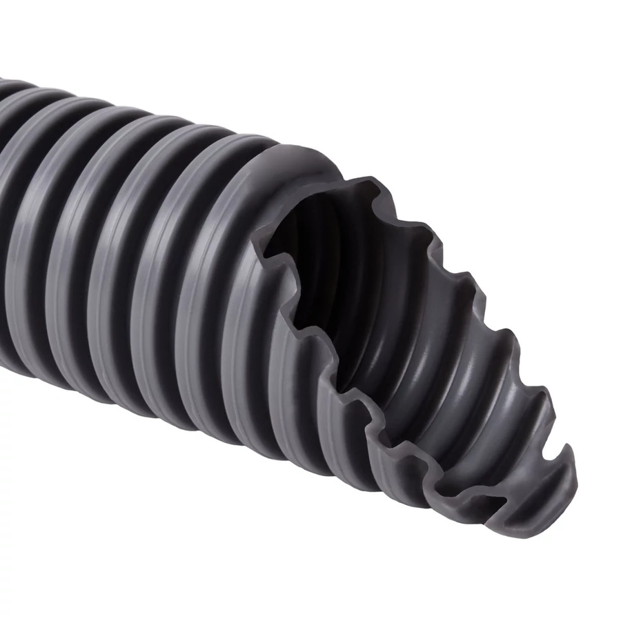 Rugalmas vezetékcső, halogénmentes, SUPER MONOFLEX HFPP 50 mm átmérővel, 34222, mechanikai ellenállás 750N/5cm, szürke, 25 m-es csomag. Lehetőség gyúlékony gázok és gőzök veszélyének kitett helyekre – 2-es veszélyzóna és porrobbanásveszélyes helyekre – 22-es veszélyzóna