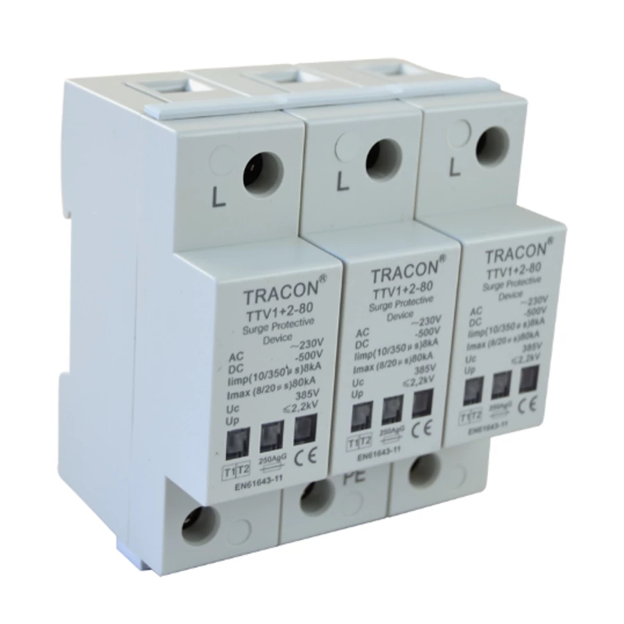 Max. levezető lökésáram (8/20): 80 kA