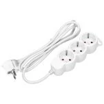 VIRONE ES-4(GS)/W/5 Elosztók 3x 2P+F , Schuko, 5m H05VV-F 1x1.5mm2, Imax = 16A, fehér