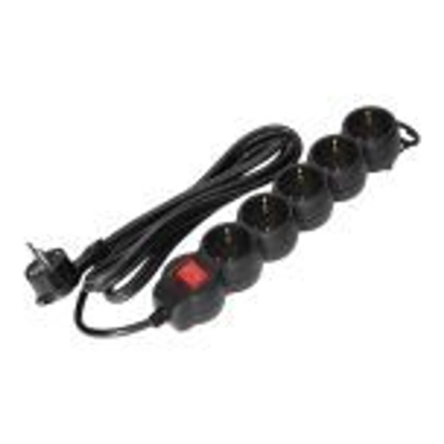 VIRONE ES-7(GS)/B/5 Elosztók 5x 2P+F kapcsolóval, 5m, Schuko H05VV-F 1x1.5mm2, Imax=16A, fekete