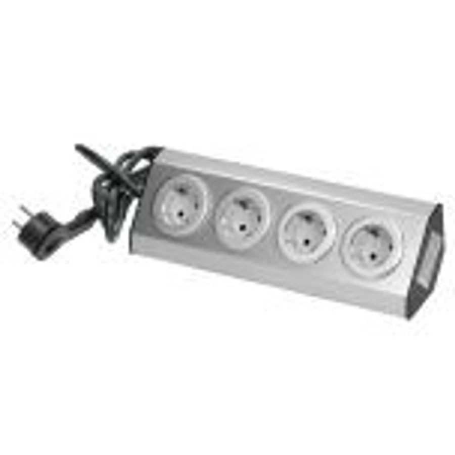 VIRONE FS-2(GS) USB töltővel ellátott konnektorkészlet bútorokhoz és konyhába, schuko, tépőzáras rögzítőcsíkokkal és 1,5 m hosszú kábellel -3x2P+Z (schuko), 2xUSB 5V 2,4A, INOX, 16A