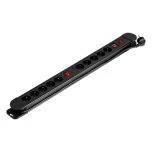 VIRONE PS-3/B/1,5M Elosztó 10 db aljzattal (2P+F), 1,5 m hosszú kábellel (3x1,5mm2), 2 db háttérvilágításos kapcsolóval, 2 db hőkapcsolóval 16A / 230 VAC, fekete